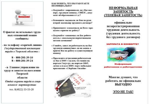 Информирование граждан и работодателей о последствиях нелегальных трудовых отношений