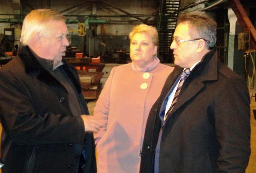 Первым пунктом поездки министра стало ОАО «Энергостальконструкция». Пример работы этого завода, основной продукцией которого традиционно являются самые разнообразные опоры для энергетики страны, а также строительные металлоконструкции, показывает, как можно старому «советскому» предприятию выжить в условиях рынка новой России и вполне успешно развиваться. Наша газета неоднократно писала об этом предприятии. С 2000 года его возглавляет А.П.Шинкаренко, и во многом благодаря его руководству завод смог вписаться в нынешние экономические реалии. В 2005 году на предприятии освоена технология горячего цинкования металлоконструкций, в 2011-м – освоен выпуск «инновационных» многогранных опор. Сейчас подходит к завершению реконструкция второй очереди предприятия, на которой, помимо изготовления «многогранок», планируется заново освоить и наращивать объемы выпуска и строительных металлоконструкций. В общем, производить то, что востребовано потребителем. Е.Е.Вожакин с интересом осмотрел производство во всех основных цехах предприятия. Помимо генерального директора ОАО «ЭСК» А.П.Шинкаренко, в каждом цехе пояснения давали их руководители: в цехе опор – Г.Н.Филиппов, в цехе горячего цинкования – С.А.Демидов и Н.И.Жигарев. Областного руководителя впечатлило производство и то отношение к делу, при котором, вопреки определенным трудностям, связанным с общим спадом производства в стране и реализации продукции в сфере энергетики, в частности, здесь вкладываются значительные средства в его модернизацию, закупаются импортные высокотехнологичные линии металлообработки.